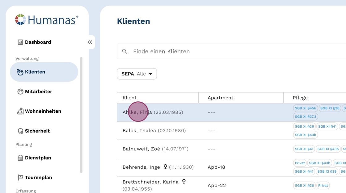 5. Klicke auf "Hinzufügen", um die Änderungen beim Klienten zu speichern.