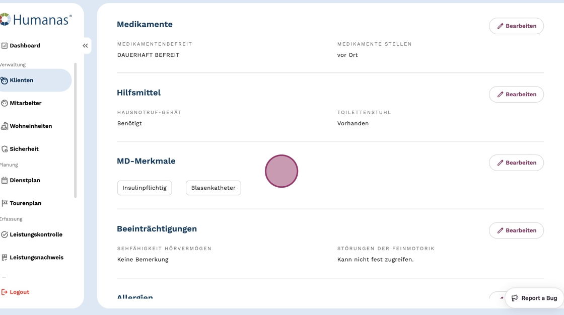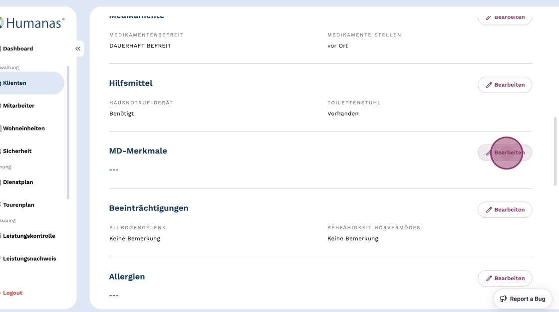 6. Die aktuelle und vollständige Liste aller MD-Merkmale des Klienten wird in den "Stammdaten" unter "MD-Merkmale" aufgeführt.