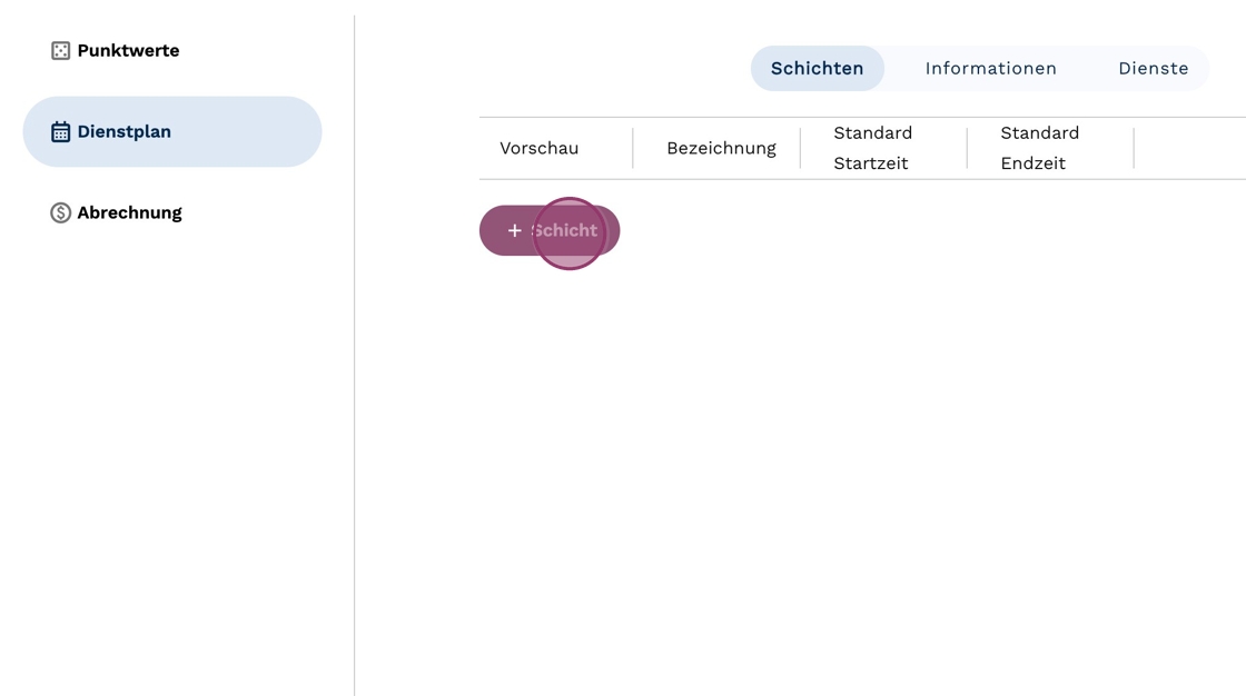4. Klicke auf "+ Schicht", um eine neue Schicht zu erstellen.