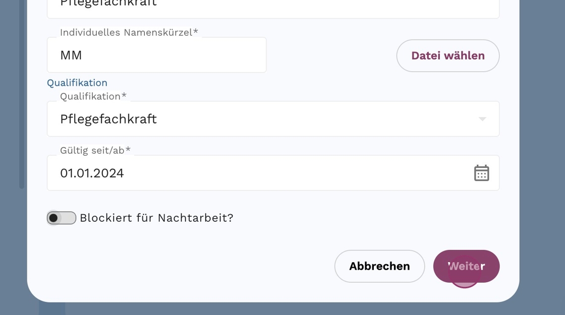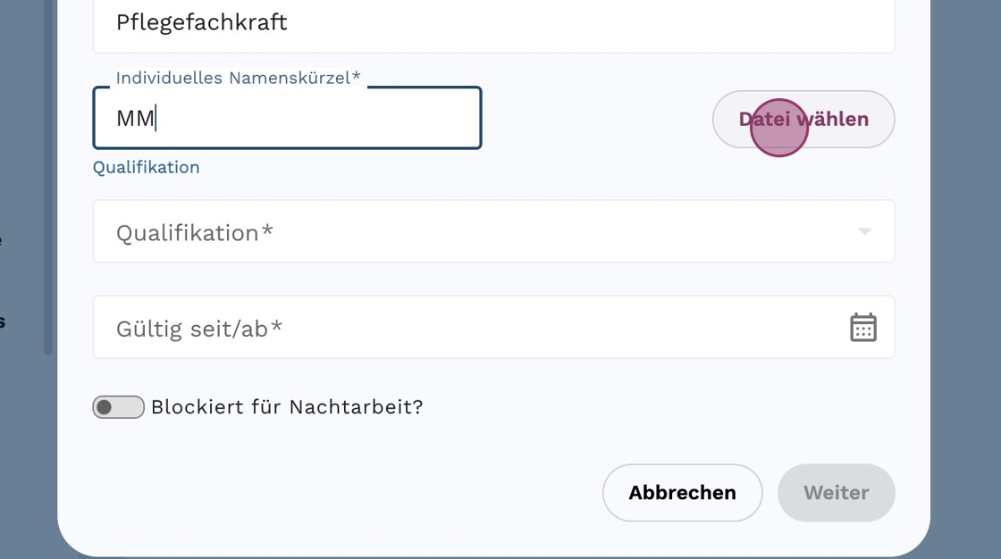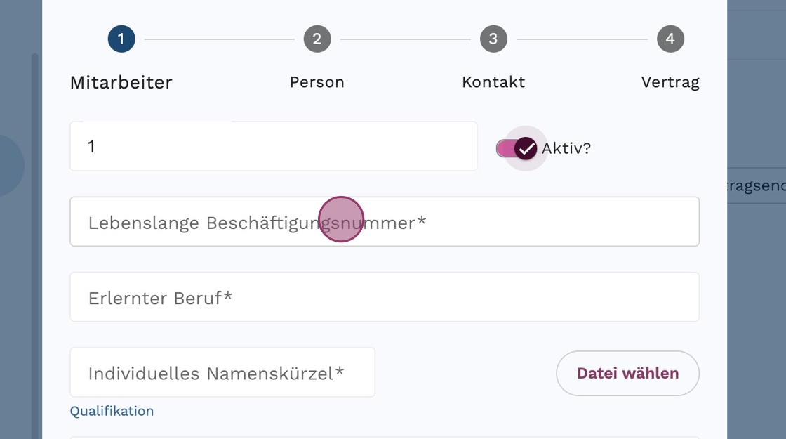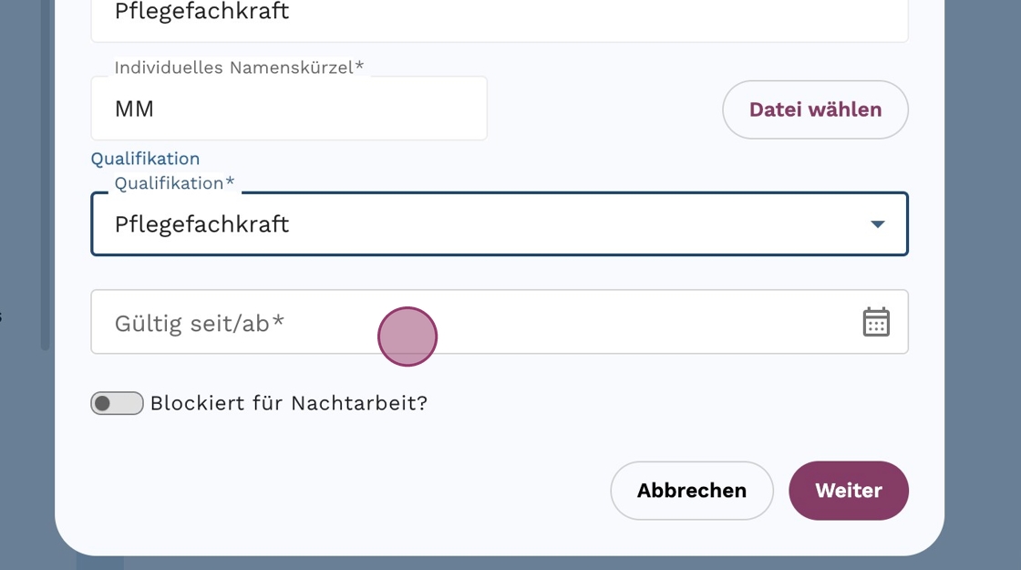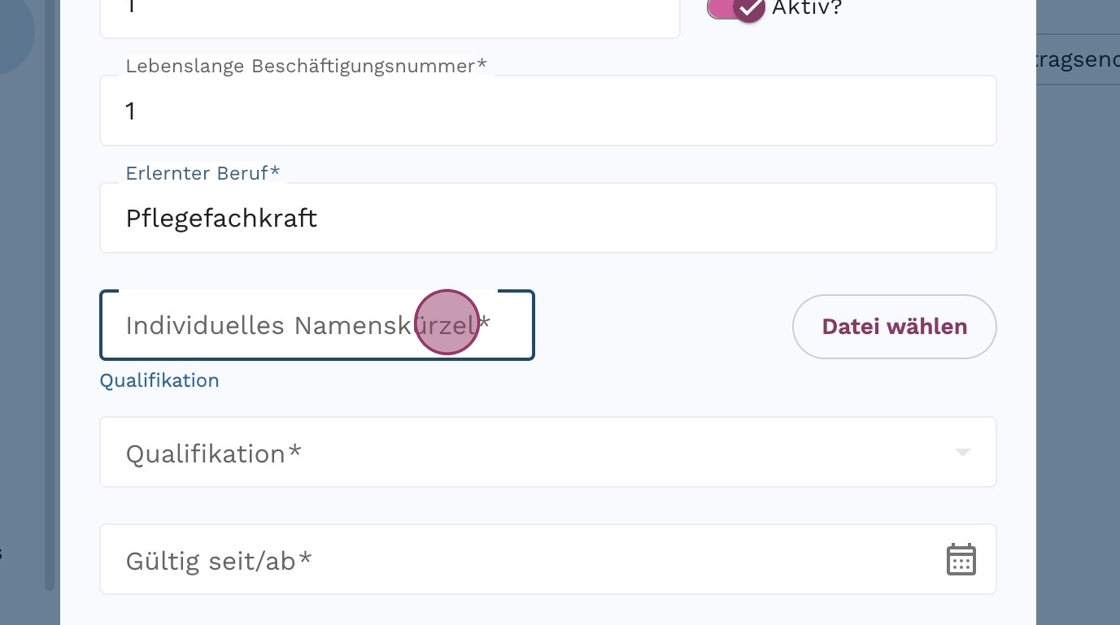 9. Klicke auf das Feld "Qualifikation", um die entsprechende Qualifikation des neuen Mitarbeiters auszuwählen.