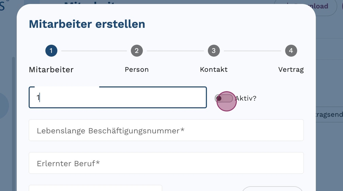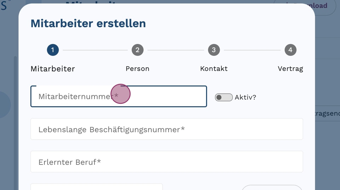 3. Trage die zugewiesene "Mitarbeiternummer" in das dafür vorgesehene Feld ein.