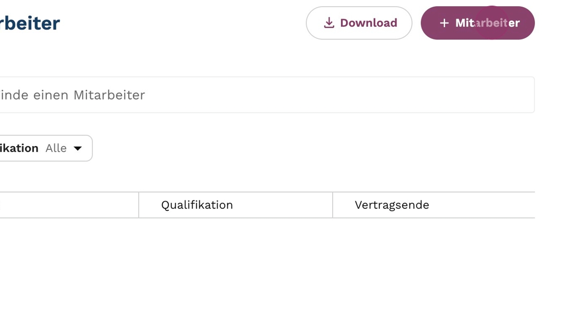 2. Klicke oben rechts auf "+ Mitarbeiter", um einen neuen Mitarbeiter anzulegen.