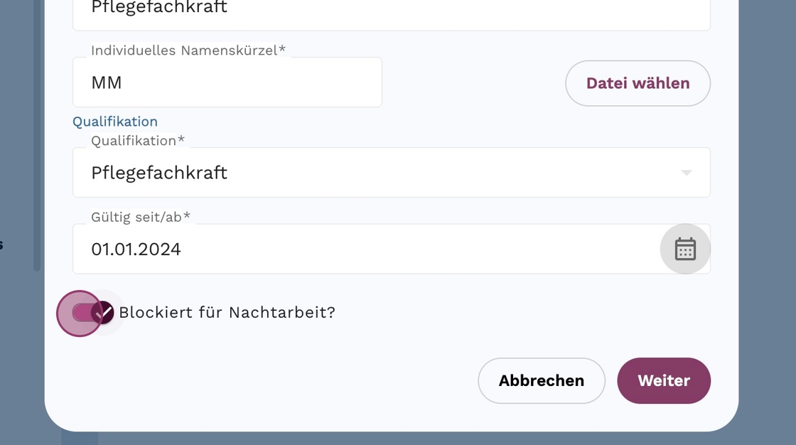 11. Bestimme, ob der Mitarbeiter als "für die Nachtarbeit blockiert" geführt werden soll oder nicht.
