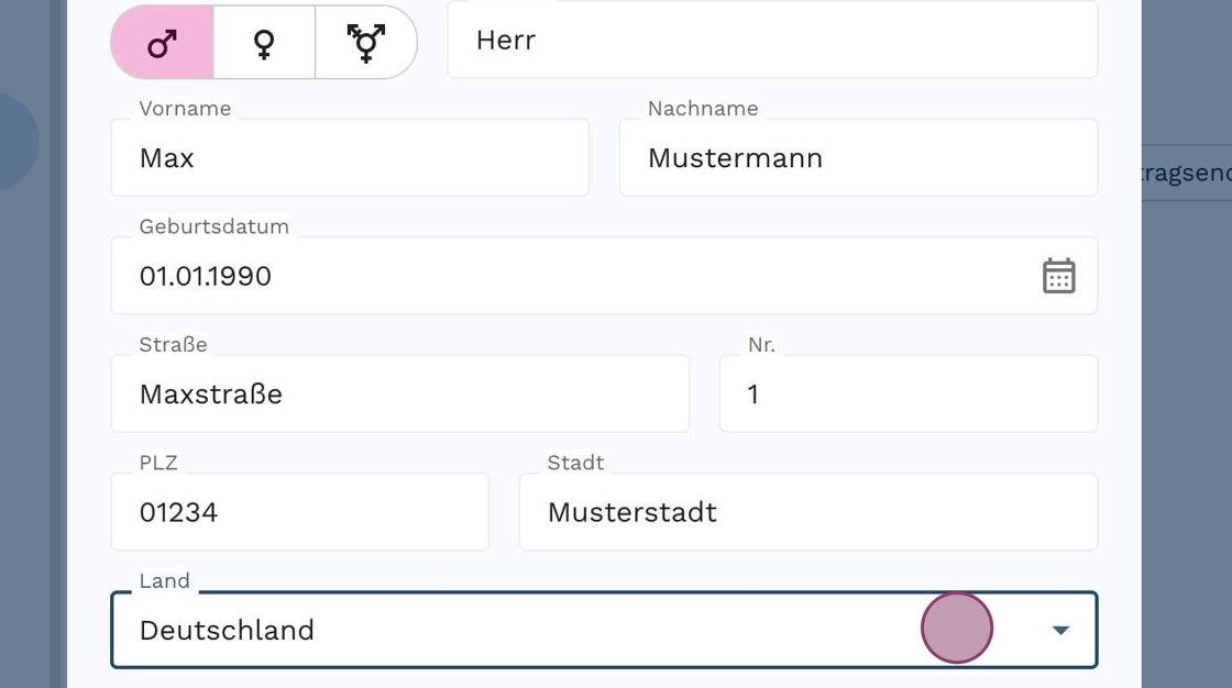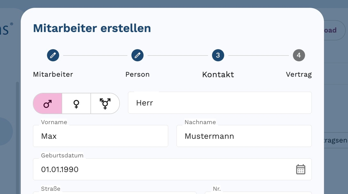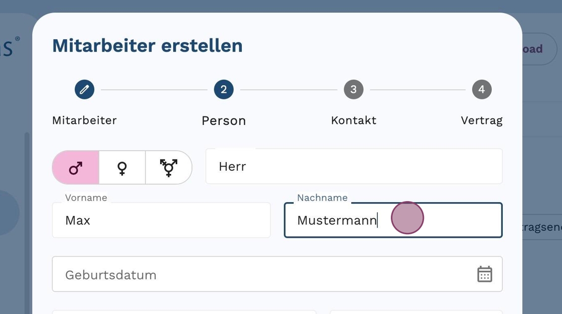 13. Wähle das Geschlecht des Mitarbeiters aus, indem Du auf das entsprechende Symbol klickst.