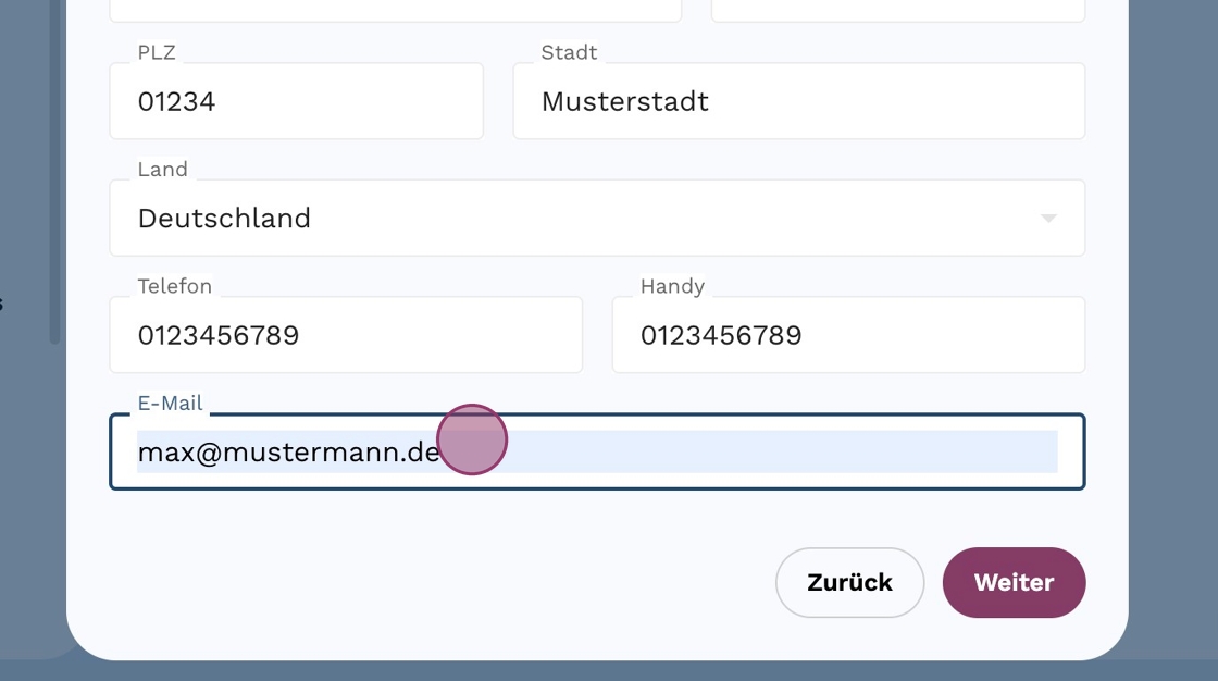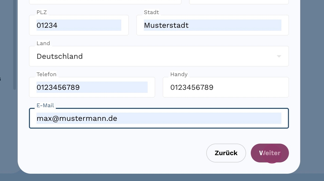 16. Fülle die Felder "Telefon", "Handy" und "E-Mail-Adresse" mit den Daten des Mitarbeiters aus.