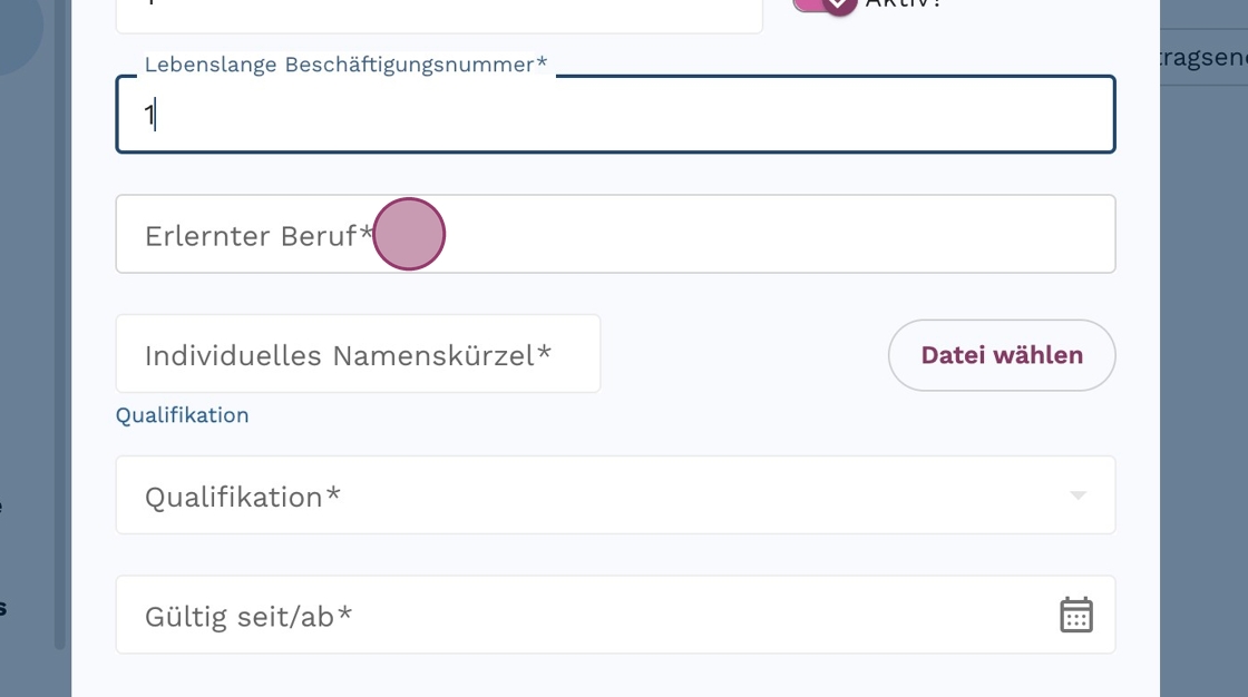 6. Trage den "Erlernten Beruf" in das dafür vorgesehene Feld ein.