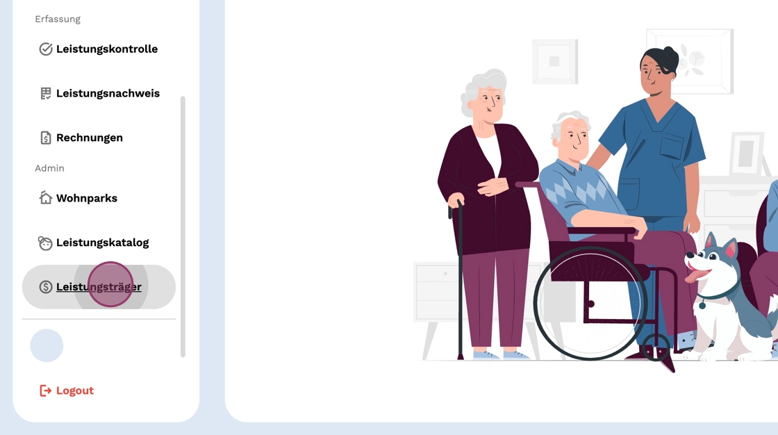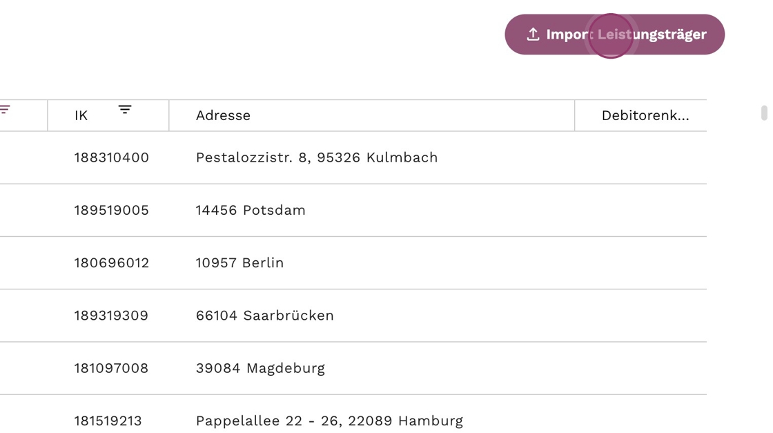 2. Klicke oben rechts auf "Import Leistungsträger", um neue Leistungsträger zu importieren.