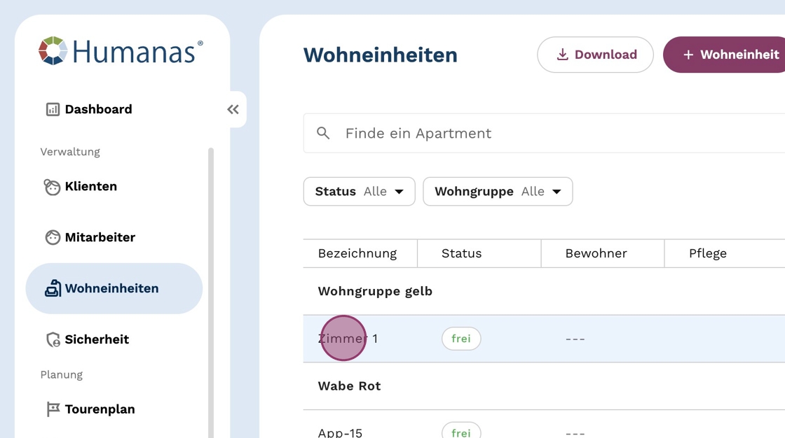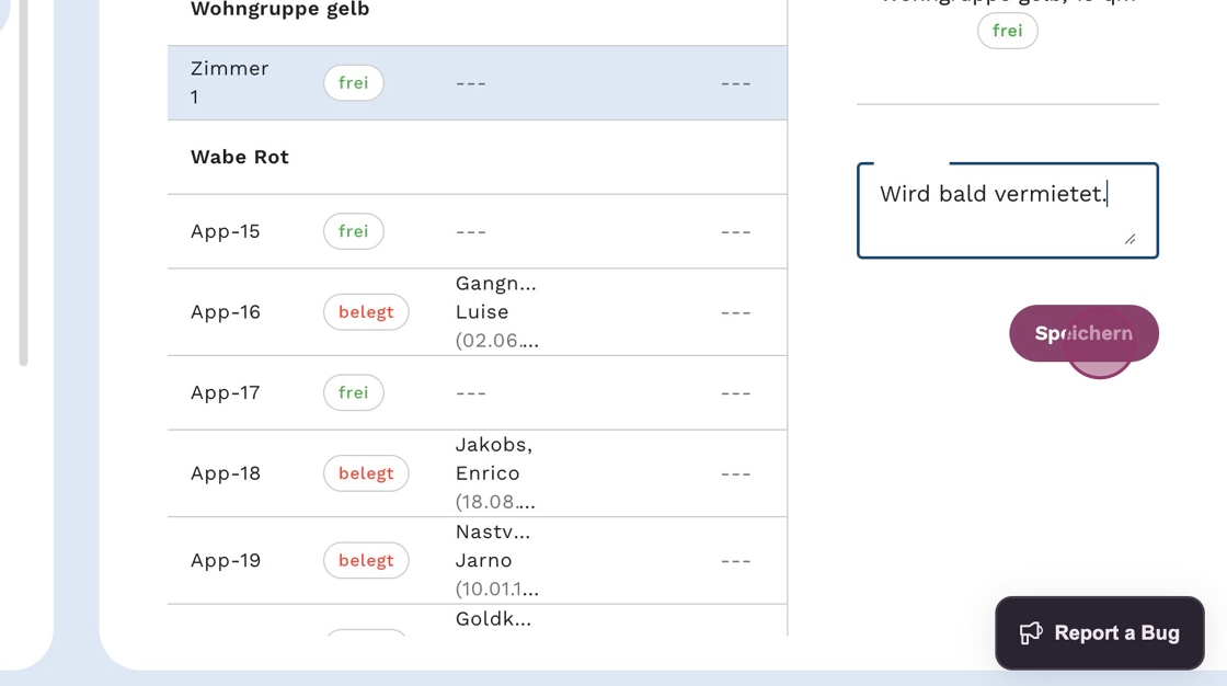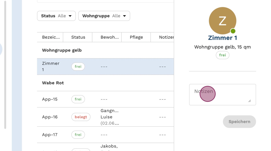 2. Wähle die gewünschte Wohneinheit aus und klicke auf sie, um eine Notiz/Anmerkung hinzuzufügen.