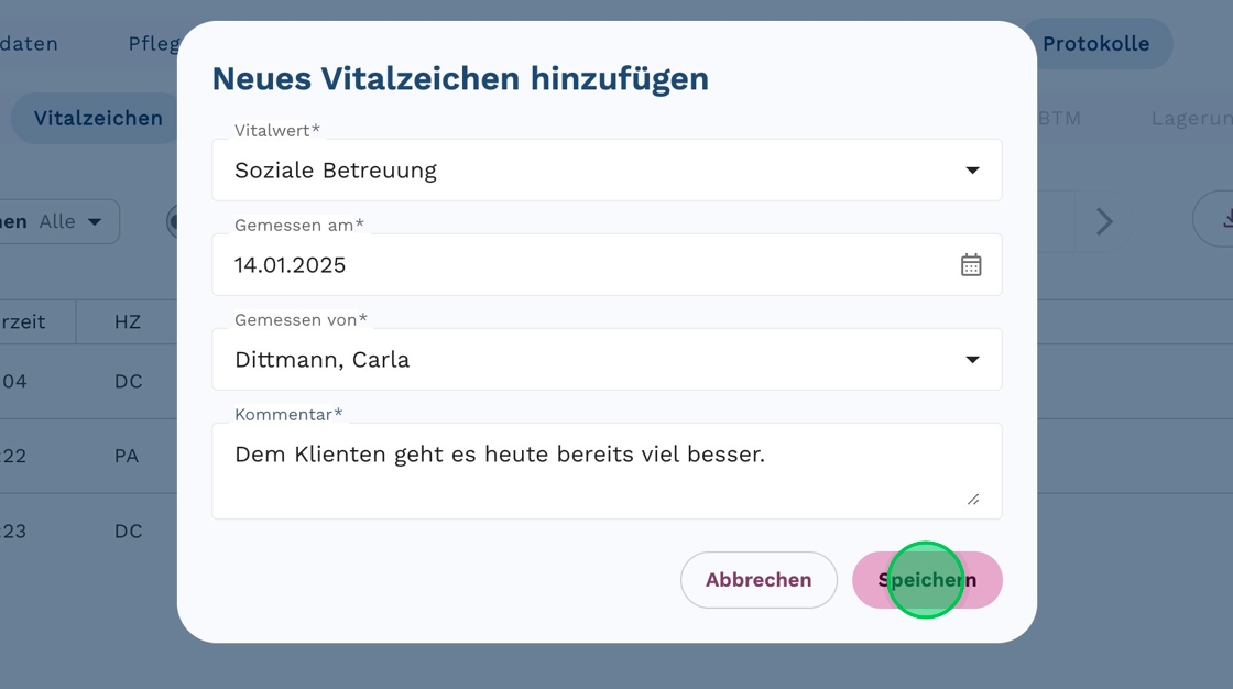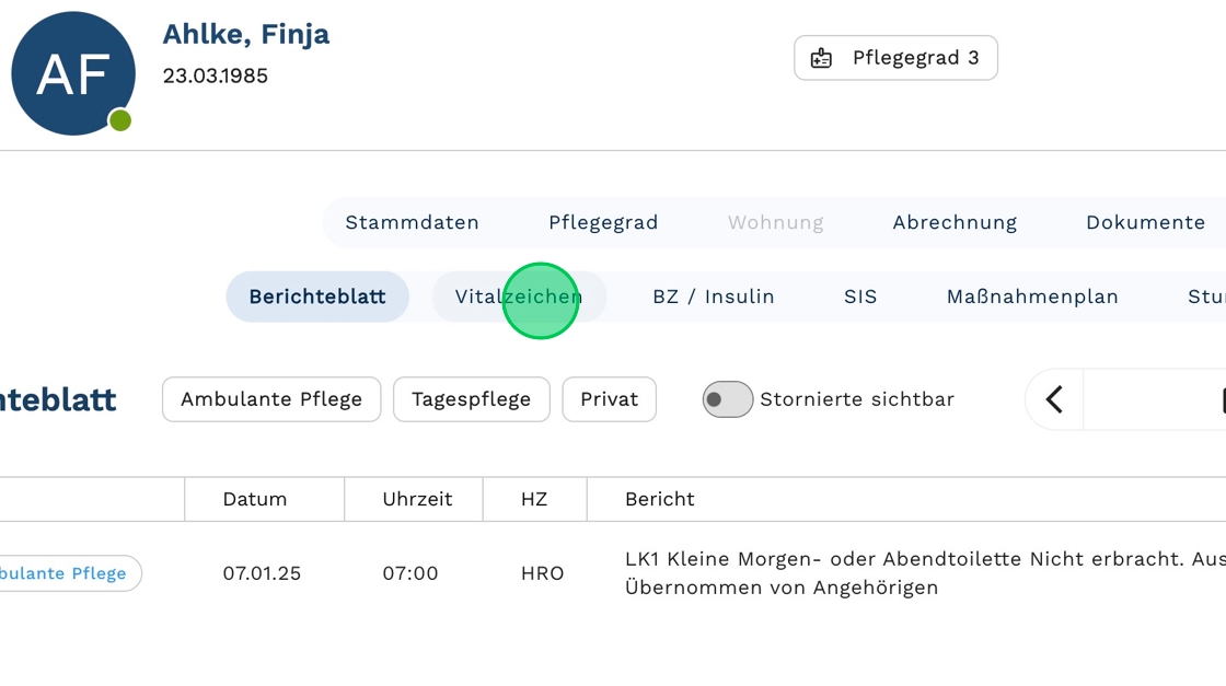 4. Klicke im Unterregister auf "Vitalzeichen".
