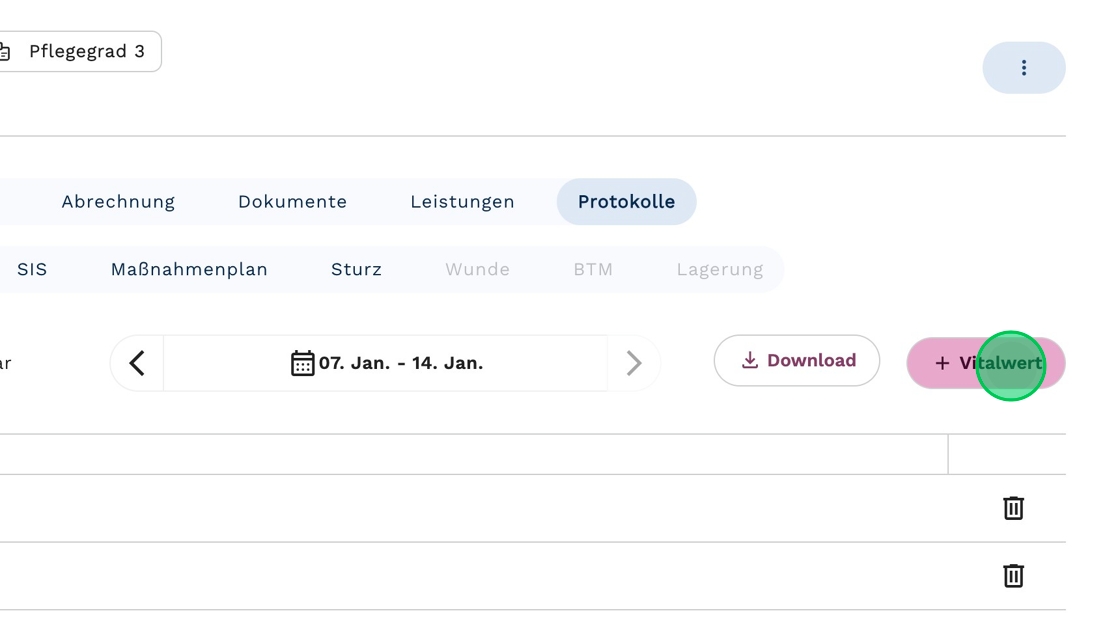 5. Erstelle ein neues Protokoll, indem Du auf "+ Vitalwert" klickst.