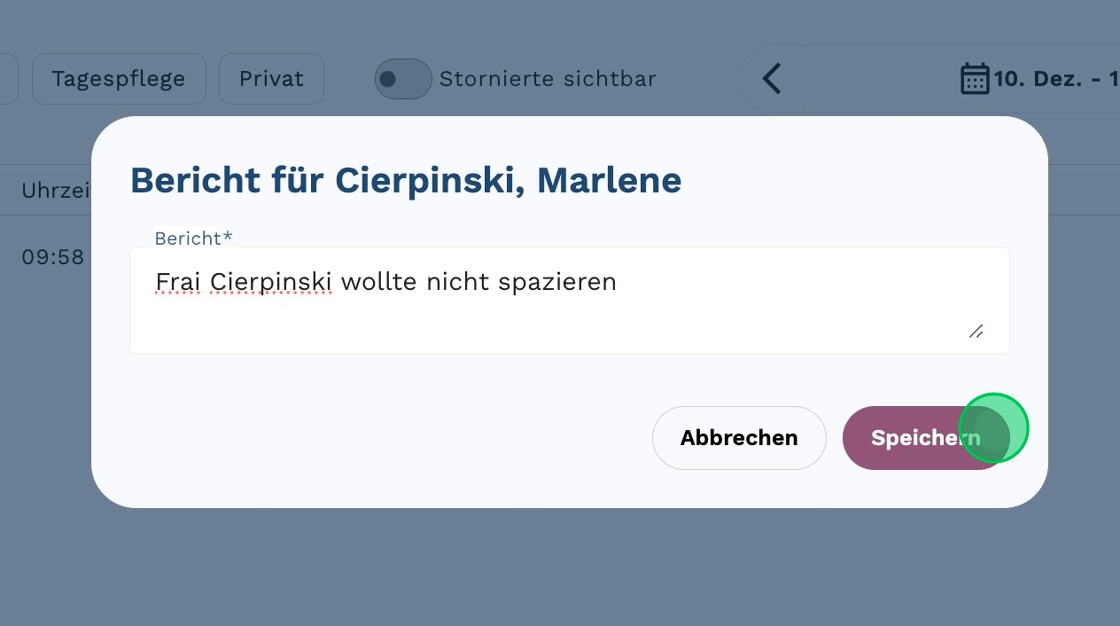 Anmerkung: Der Bericht kann nur angepasst werden, solange die Tour noch aktiv ist.