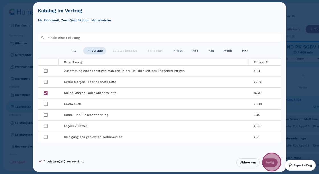 10. Wenn Du alle benötigten Leistungen ausgewählt hast, klicke auf "Fertig".