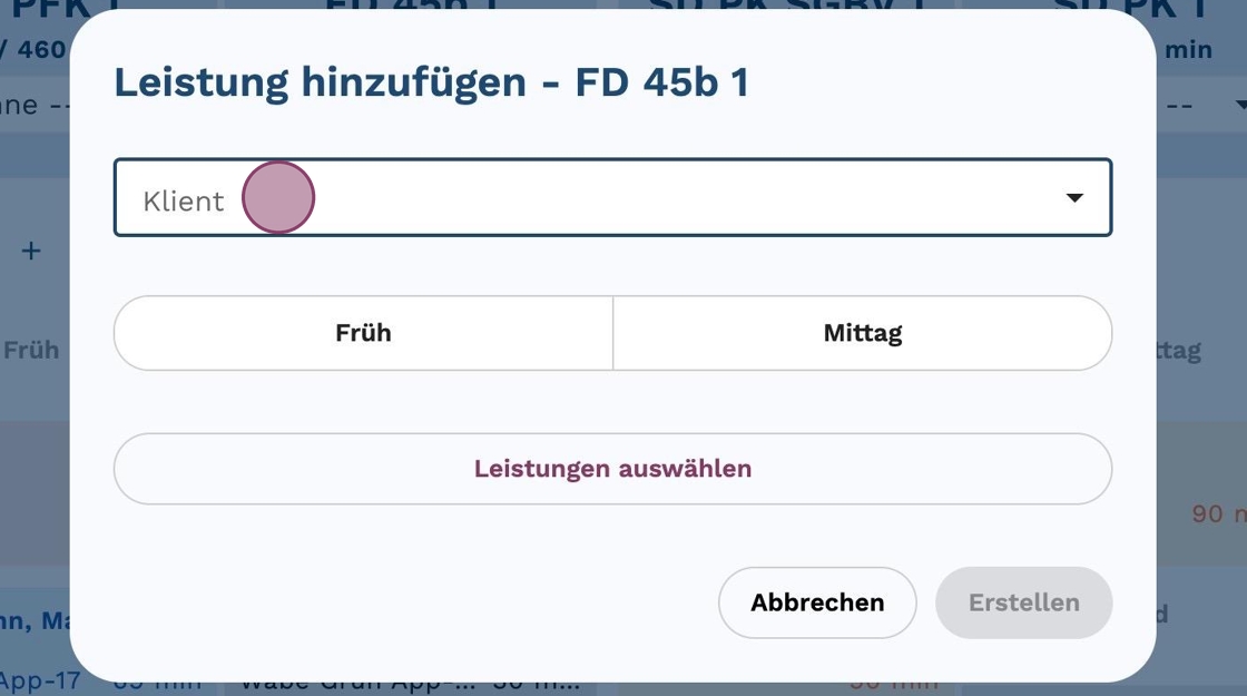 5. Klicke auf das Feld "Klient", um den entsprechenden Klienten auszuwählen.
