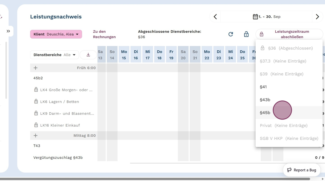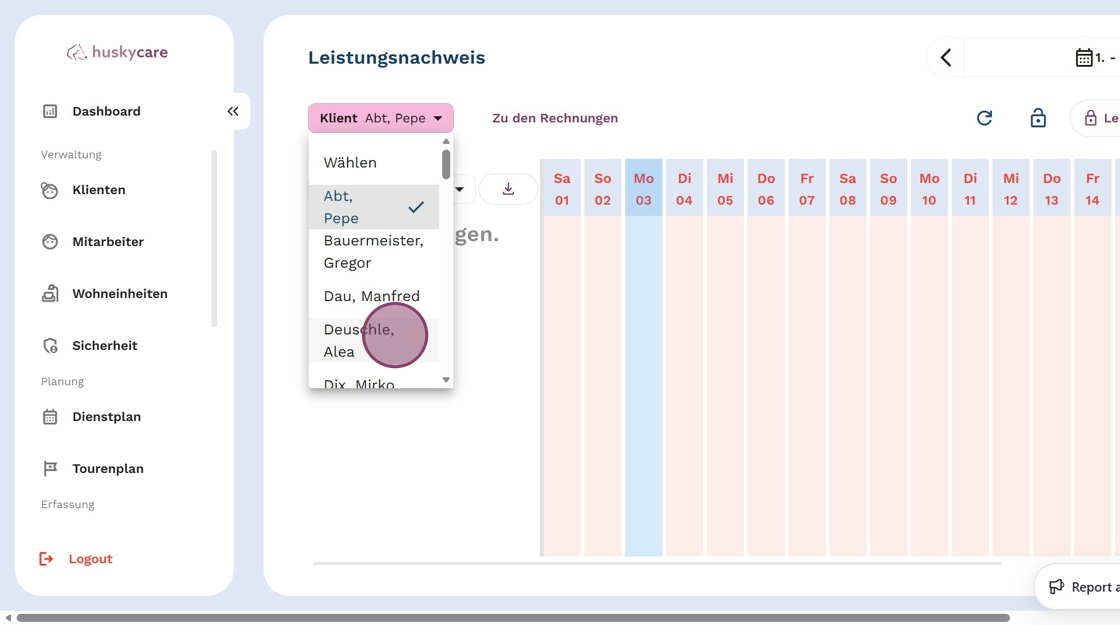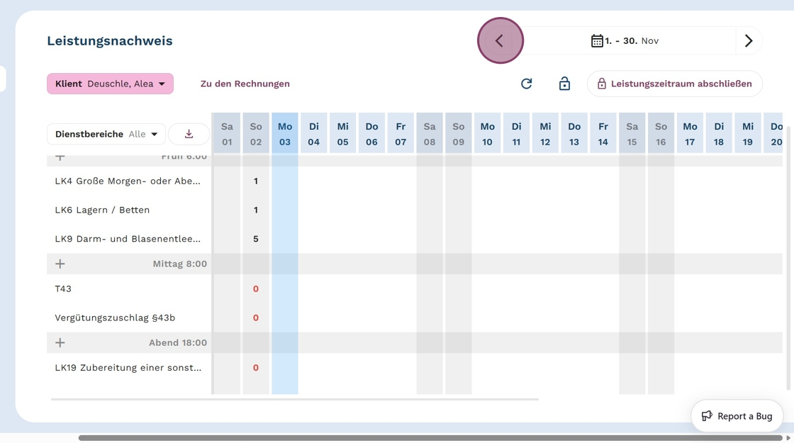 4. In der Kalendarleiste kannst du den Monat auswählen , für den du den Leistungsnachweis überprüfen möchtest.