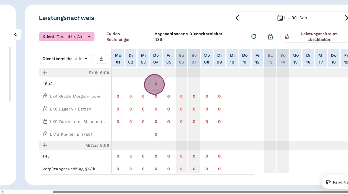 6. Die rote Null weist darauf hin, dass Leistungen geplant, aber nicht erbracht wurden.