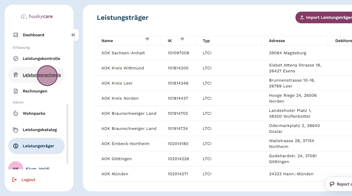 1. Klicke im Seitenmenü unter Erfassung auf "Leistungsnachweis".