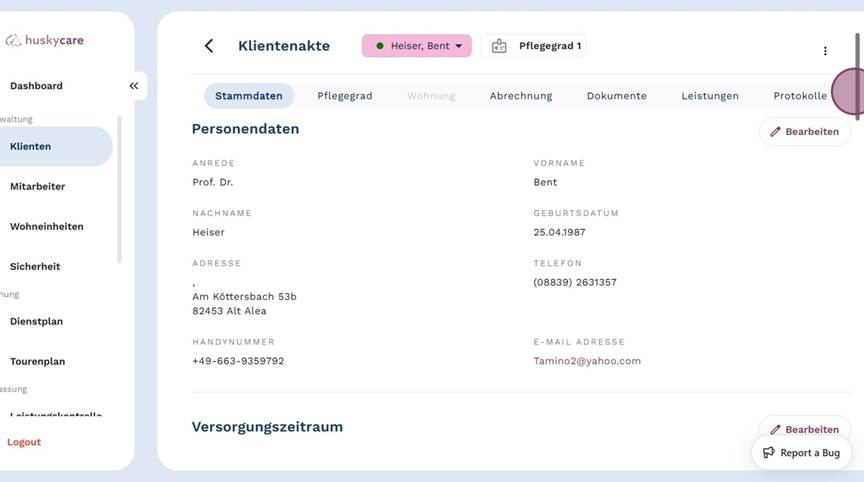 - Klicke im Seitenmenü unter Verwaltung auf "Klienten".