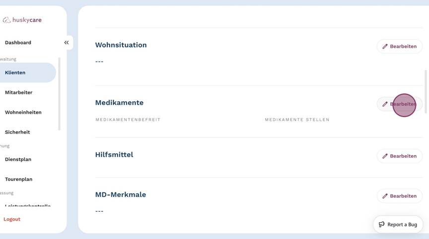 4.Klicke in den "Stammdaten" unter "Medikamente" rechts auf "Bearbeiten".