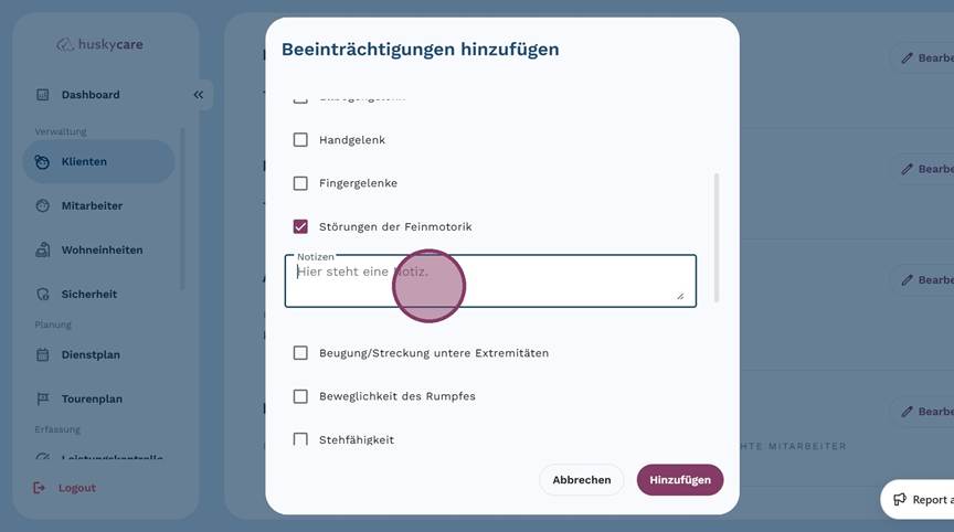 4. Klicke auf die "Beeinträchtigung", die Du hinzufügen oder bearbeiten möchtest.