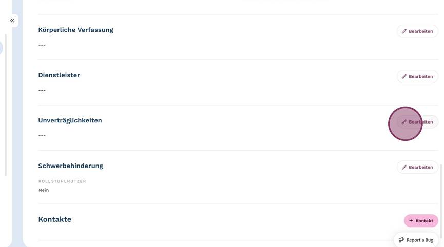 3. Klicke in den "Stammdaten" unter "Unverträglichkeiten" rechts auf "Bearbeiten".