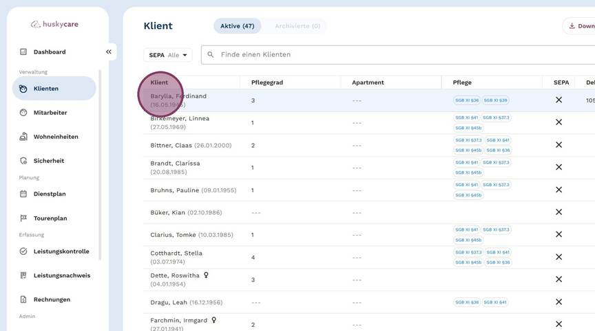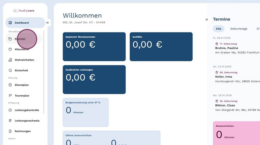 1. Klicke im Seitenmenü unter Verwaltung auf "Klienten".