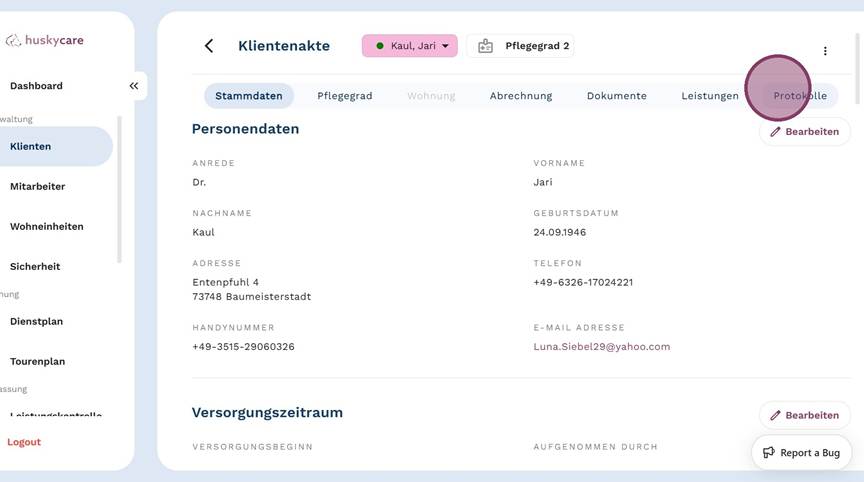 1. Klicke im Seitenmenü unter Verwaltung auf "Klienten".
