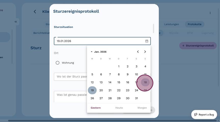 7. Wähle das Datum aus, an dem sich der Sturz zugetragen hat.