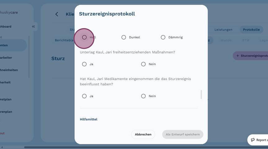 Wie erstelle ich ein Sturzereignisprotokoll?