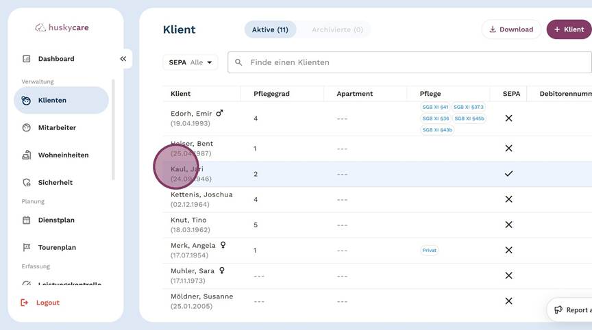 2. Wähle den gewünschten Klienten aus.