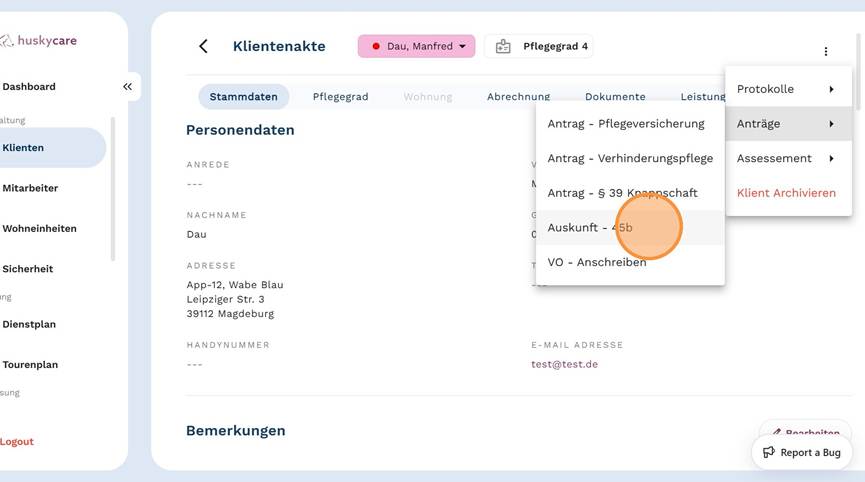 2. Wähle den gewünschten Klienten aus.