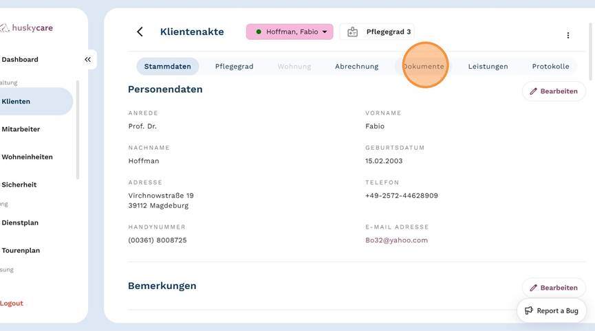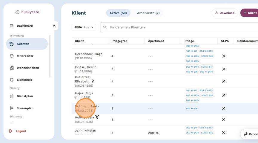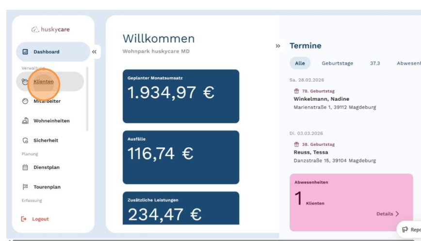 1. Klicke im Seitenmenü unter Verwaltung auf "Klienten".