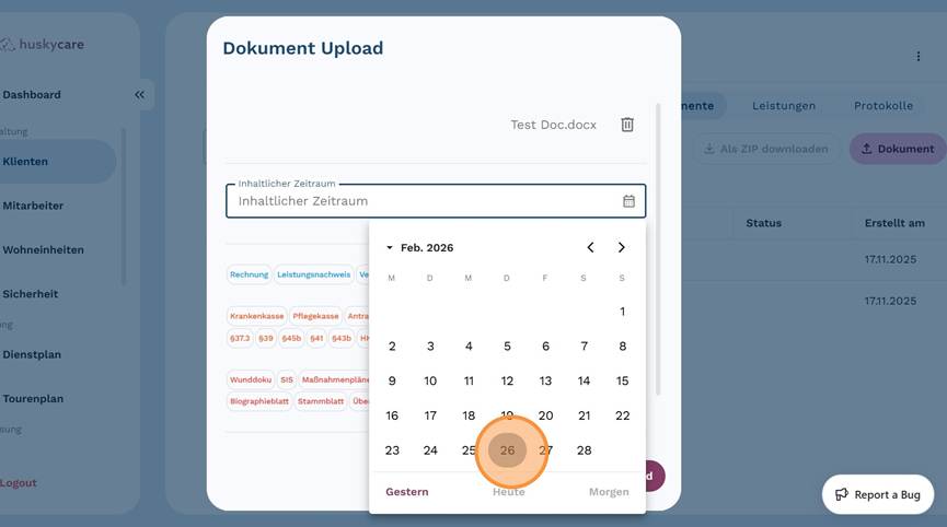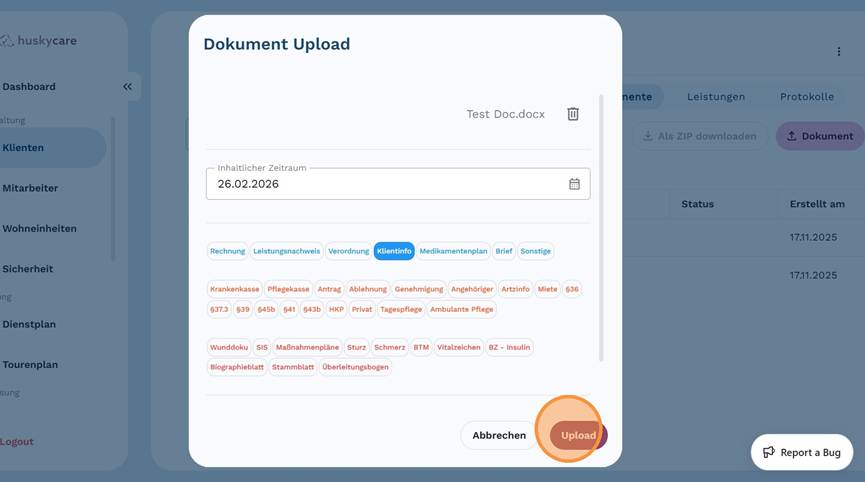 Wie lade ich ein Dokument in die Kundendokumentation hoch?